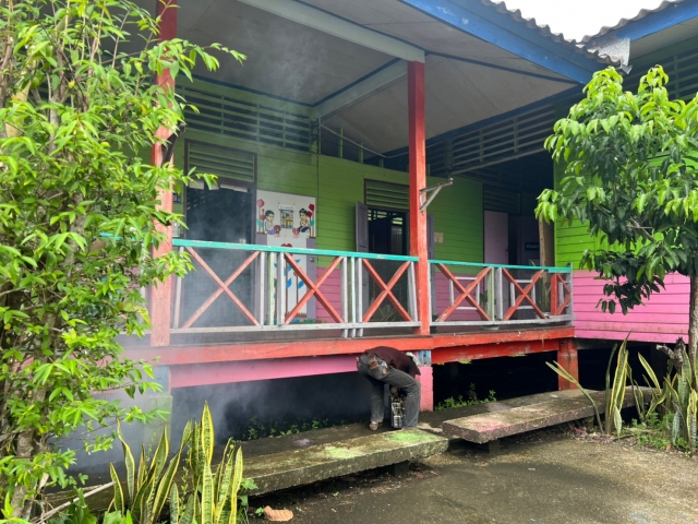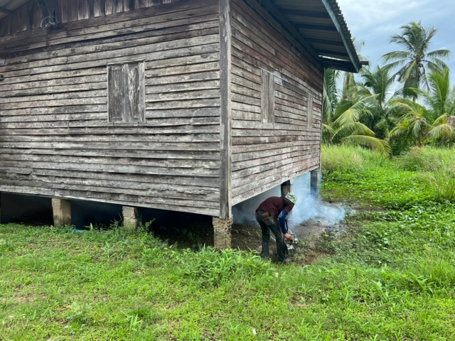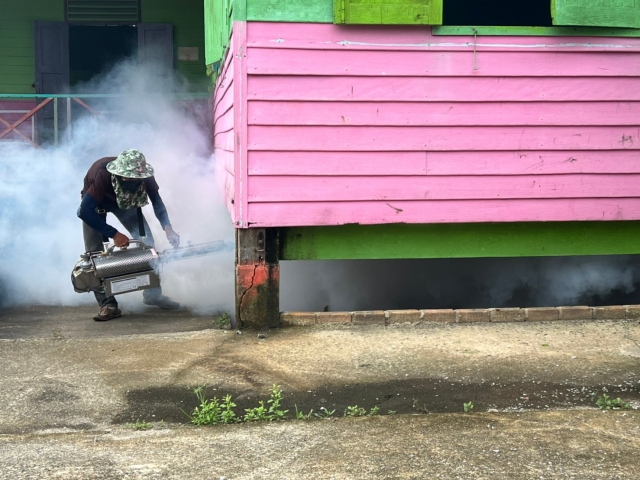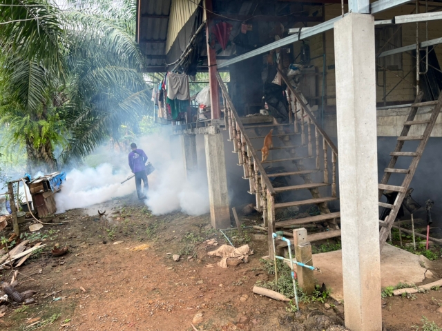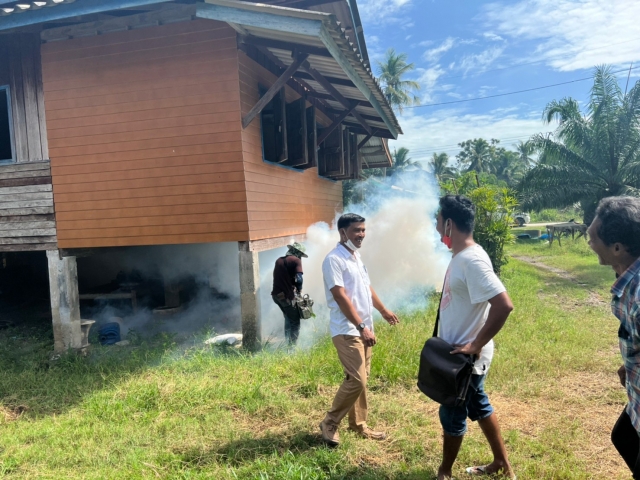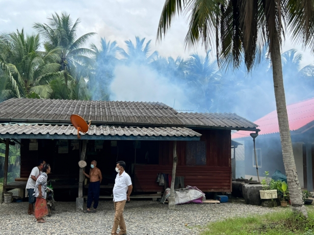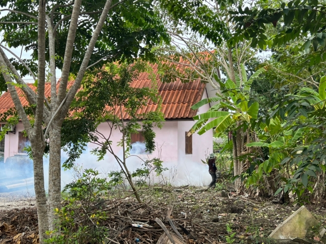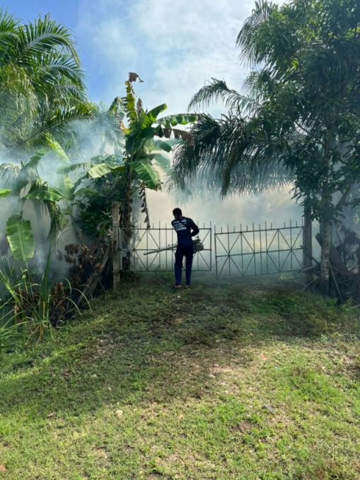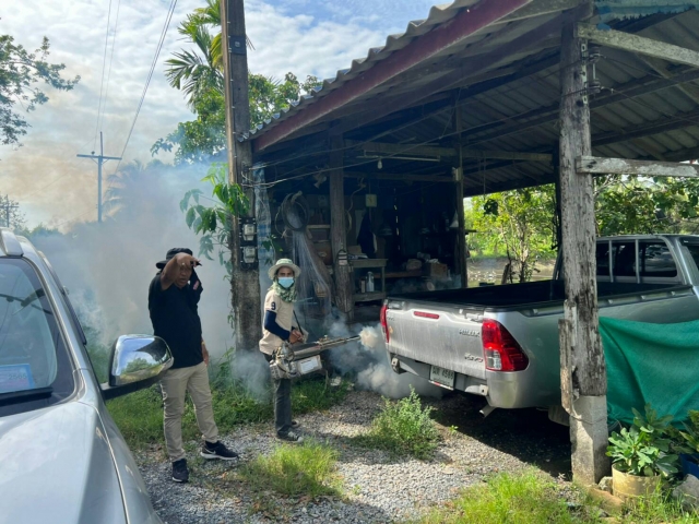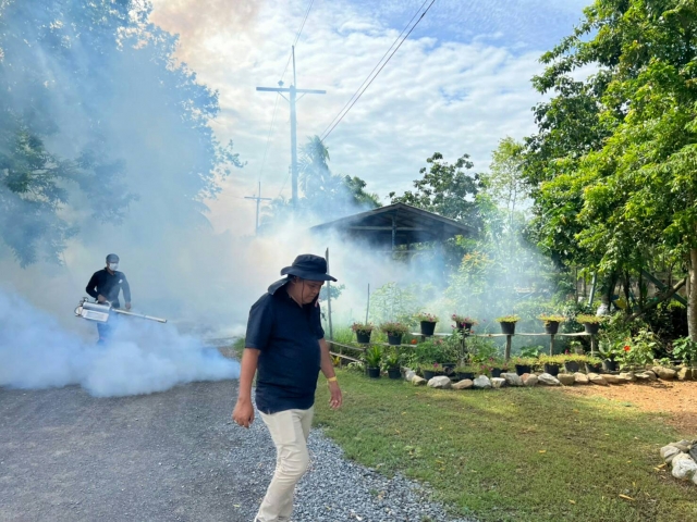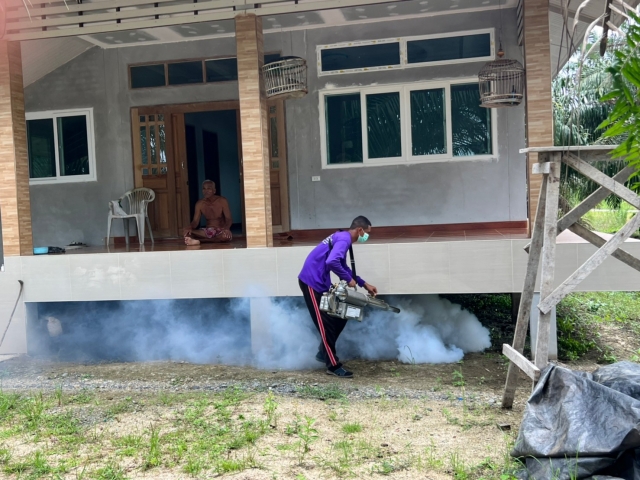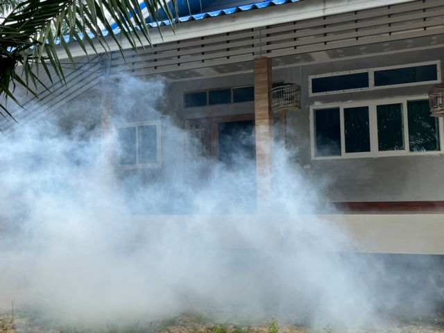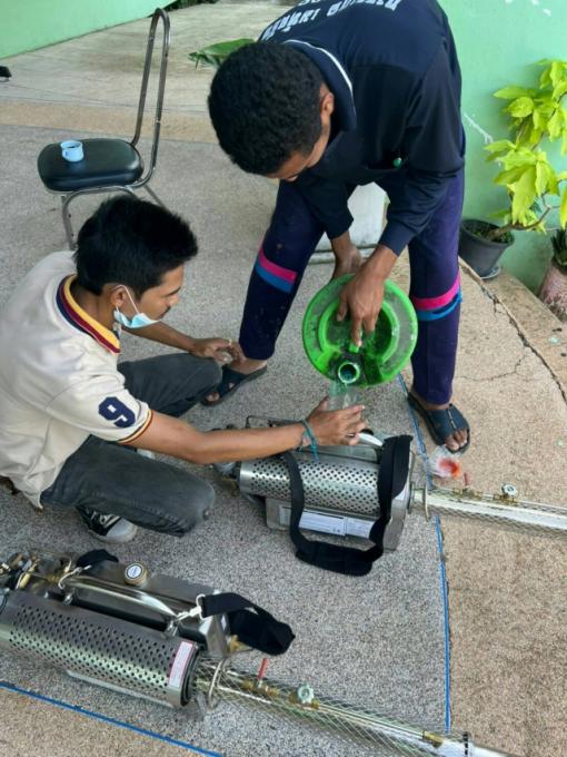 พ่นหมอกควันกำจัดยุงในพื้นที่ตำบลบ้านเนินและบ้านกลาง ทั้ง 14 หมู่บ้าน