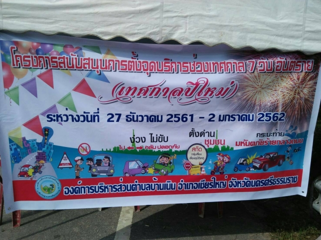 เริ่มวันแรก " โครงการสนับสนุนตั้งจุดบริการชั่วคราวเทศกาล 7 วัน อันตราย " " เทศกาลปีใหม่ " ระหว่างวันที่ 27 ธันวามคม 2561 - 2 มกราคม 2562 องค์การบริหารส่วนตำบลบ้านเนิน