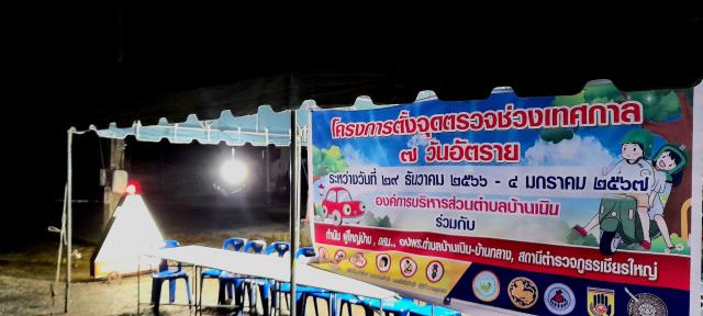องค์การบริหารส่วนตำบลบ้านเนินได้จัดโครงการตั้งจุดตรวจช่วงเทศกาล 7 วันอันตราย (จุดบริการประชาชนเทศกาลปีใหม่ พ.ศ. 2567) ณ ลานเทปาล์มบ้านภูเก็ต หมู่ที่ 2 ตำบลบ้านกลาง อำเภอเชียรใหญ่ ระหว่างวันที่ 29 ธันวาคม 2566 - 4 มกราคม 2567 มีสมาชิก อปพร. อมสม. กำนันผู้ใหญ่บ้าน เจ้าหน้าที่ตำรวจ สภ.เชียรใหญ่ คณะผู้บริหาร สมาชิกสภา อบต. และเจ้าหน้าที่ อบต.บ้านเนิน ร่วมกันประจำจุดบริการทุกวัน ตั้งแต่เวลา 06.00 น. - 18.00 น.