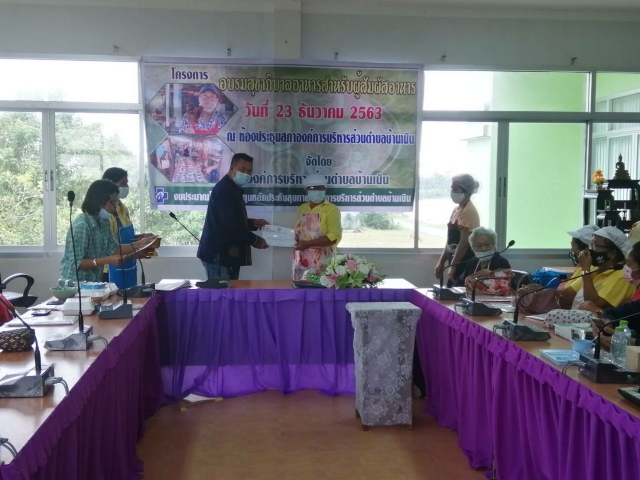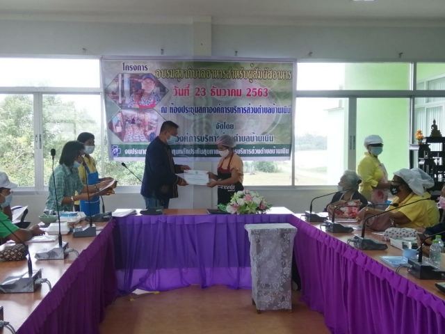โครงการอบรมสุขาภิบาลสำหรับผู้สัมผัสอาหาร วันที่ 23 ธันวาคม 2563 ณ ห้องประชุมสภาองค์การบริหารส่วนตำบลบ้านเนิน