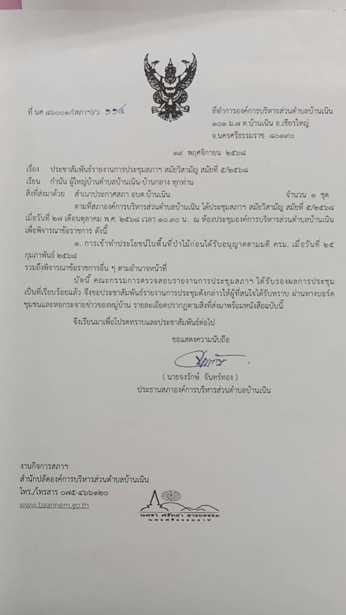 ประชาสัมพันธ์รายงานการประชุมสภา อบต.บ้านเนิน สมัยวิสามัญ สมัยที่ 5/2568