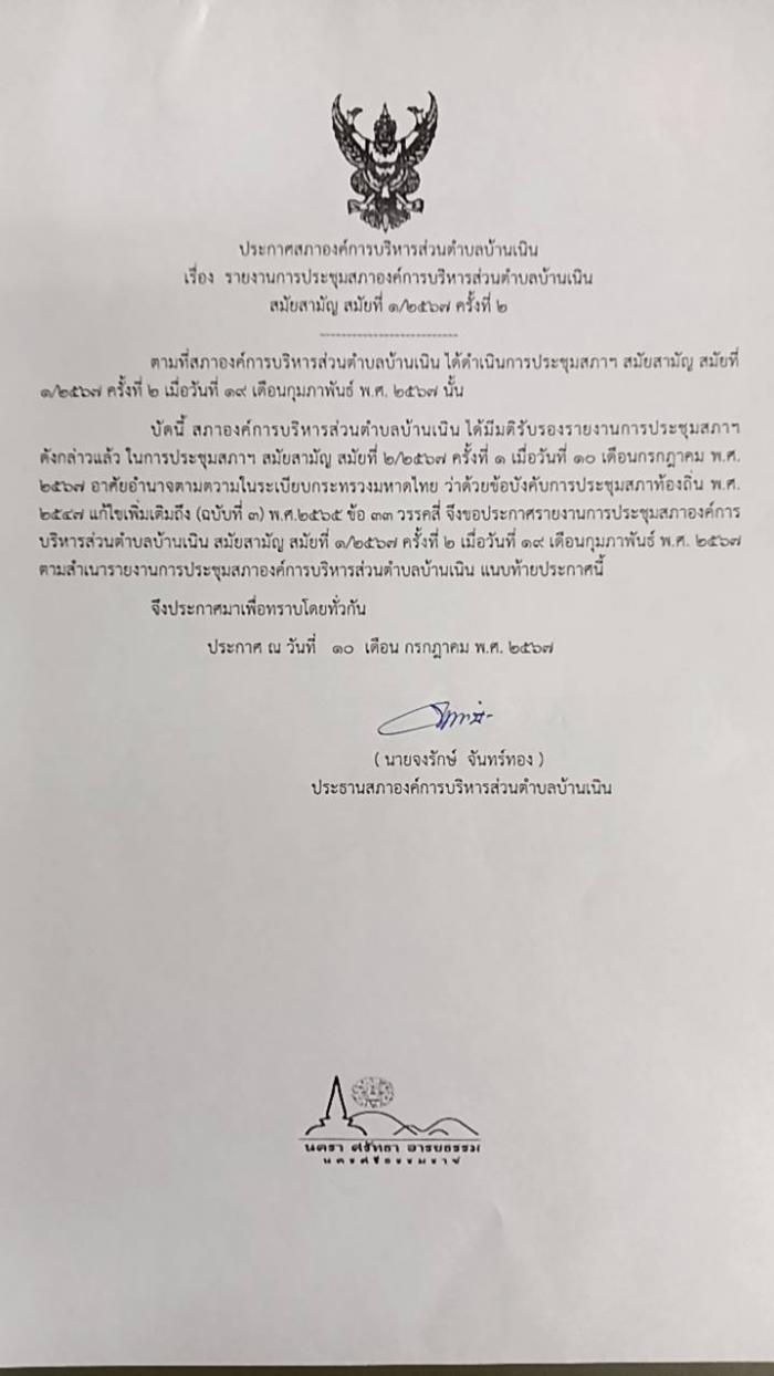 ประชาสัมพันธ์รายงานการประชุมสภา อบต.บ้านเนิน สมัยสามัญ สมัยที่ 1/2567 ครั้งที่ 2