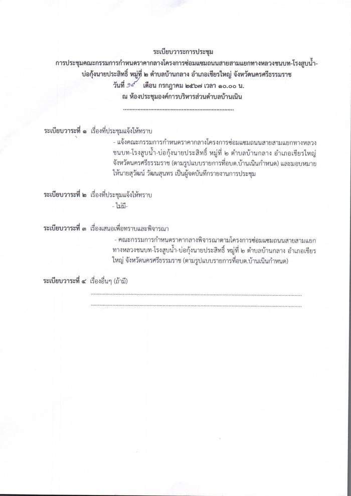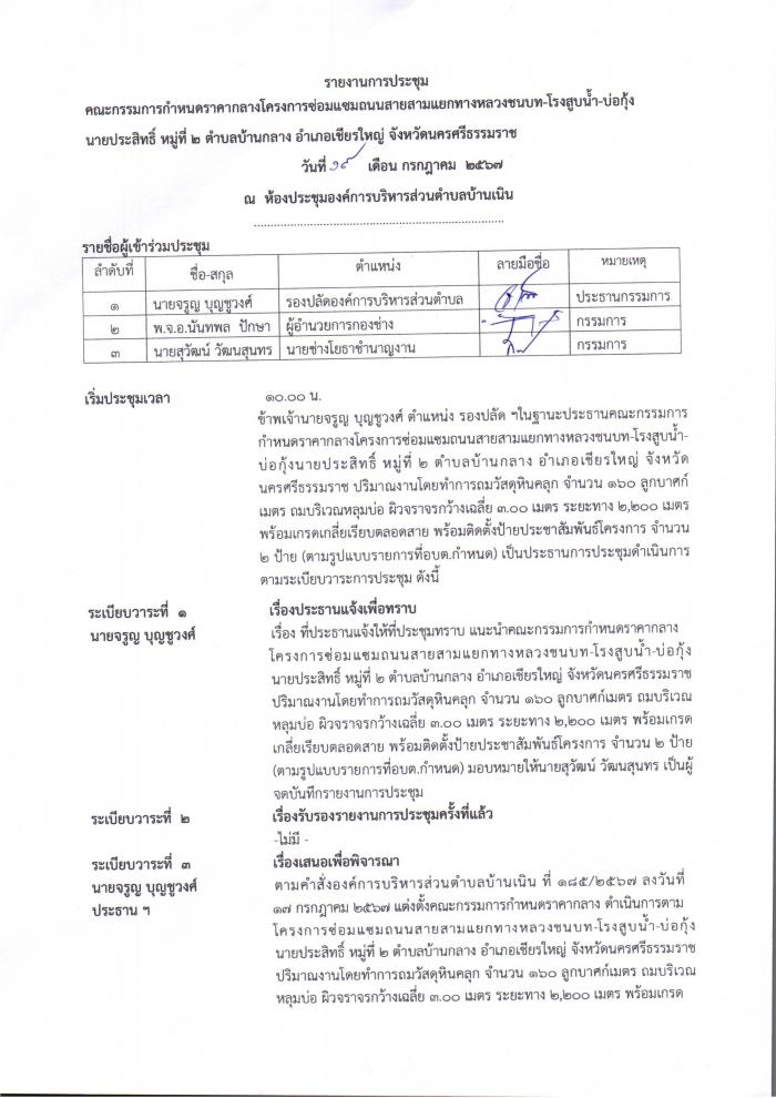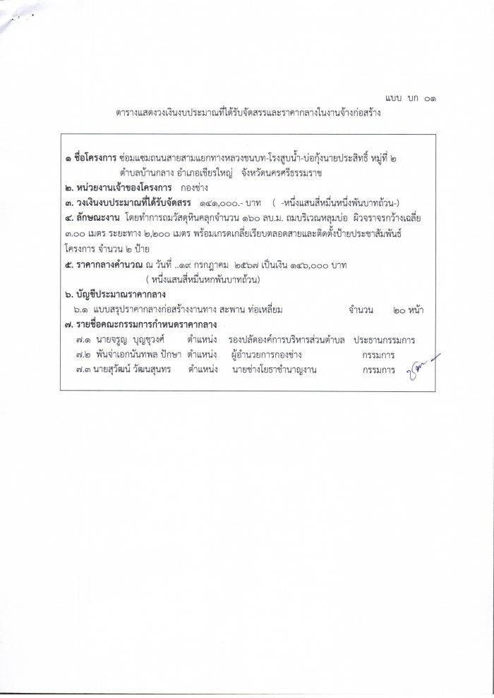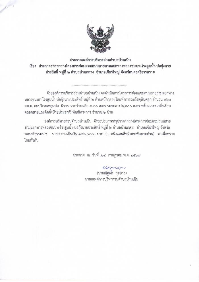 ประกาศราคากลางซ่อมแซมถนนสายสามแยกทางหลวงชนบท-โรงสูบนำ้ บ่อกุ้งนายประสิทธิ์