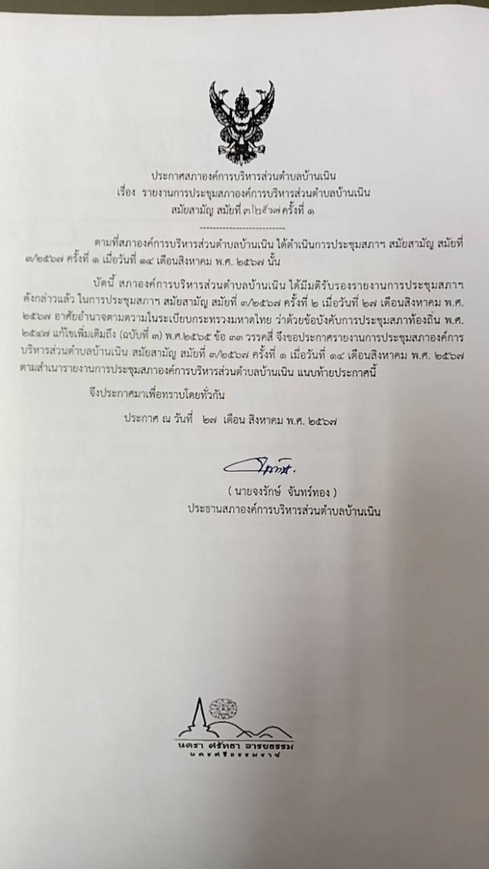 ประชาสัมพันธ์รายงานการประชุมสภา อบต.บ้านเนิน สมัยสามัญ สมัยที่ 3/2567 ครั้งที่ 1