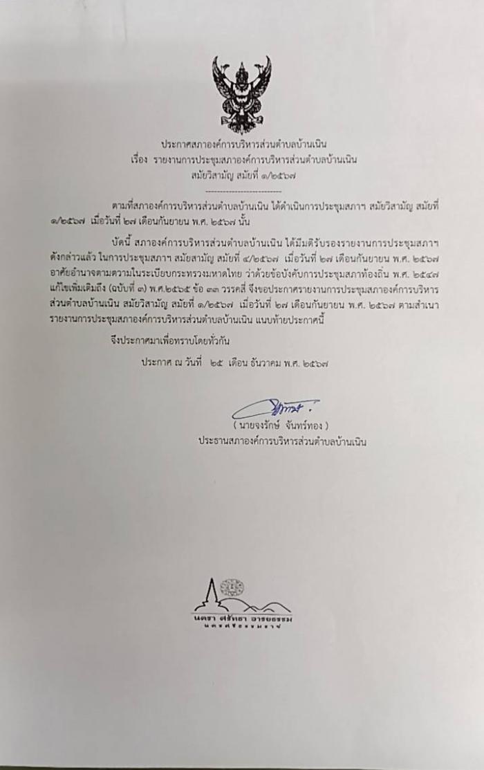 ประชาสัมพันธ์รายงานการประชุมสภา อบต.บ้านเนิน สมัยวิสามัญ สมัยที่ 1/2567