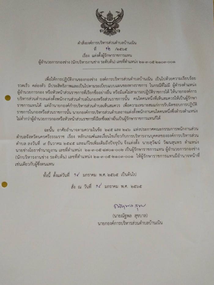 ประกาศ เรื่อง แต่งตั้งผู้รักษาราชการแทน ผู้อำนวยการกองช่าง (นักบริหารงานช่าง ระดับต้น) เลขที่ตำแหน่ง ๒๑-๓-๐๕ ๒๑๐๓-๐๐๑