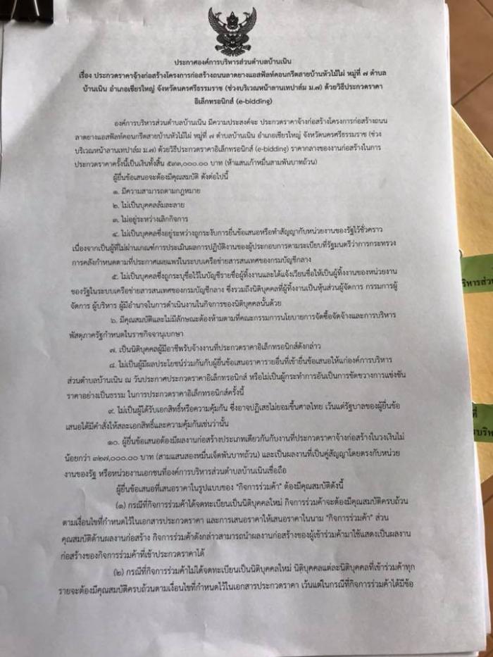 ประกาศประกวดราคาจ้างโครงการก่อสร้างถนนลาดยางแอสฟัลท์คอนกรีตสายบ้านหัวไม้ไผ่ หมู่ที่ 7