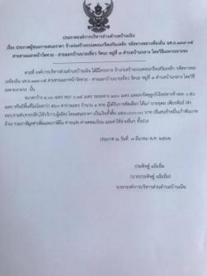 ประกาศผู้ชนะการเสนอราคา จ้างก่อสร้างถนนคอนกรีตเสริมเหล็ก สายสามแยกหน้าวัดทวย - สามแยกบ้านนายเที่ยว รัตนะ